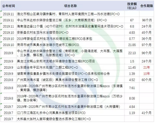 值得一提的是,在EPC模式下水环境项目,对以工程见长的施工型企业有更大的很大吸引力,在年初的一些水环境EPC项目中也可以看到,最终承接项目的也多为大型央企;到了EPCO模式下,由于有“O”的存在,央企主导的情况有了很大的改善。